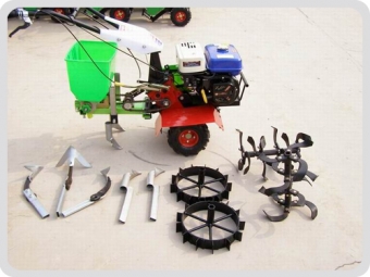 本機可以配的農具有:播種施肥耬、除草輪、耘鋤、旋耕機等。