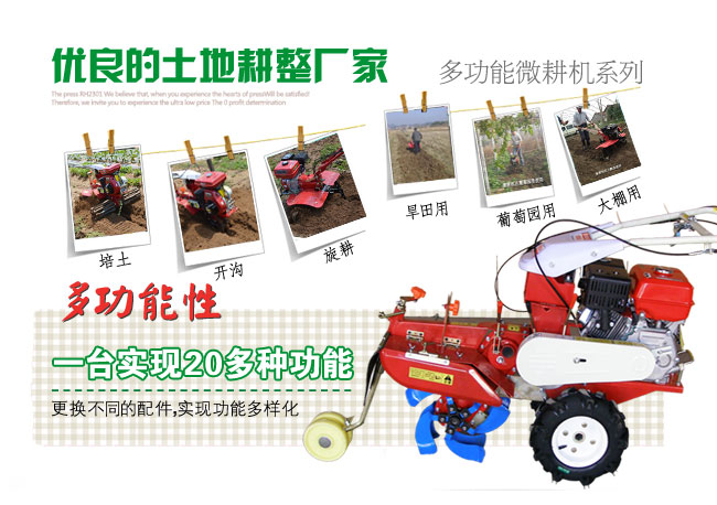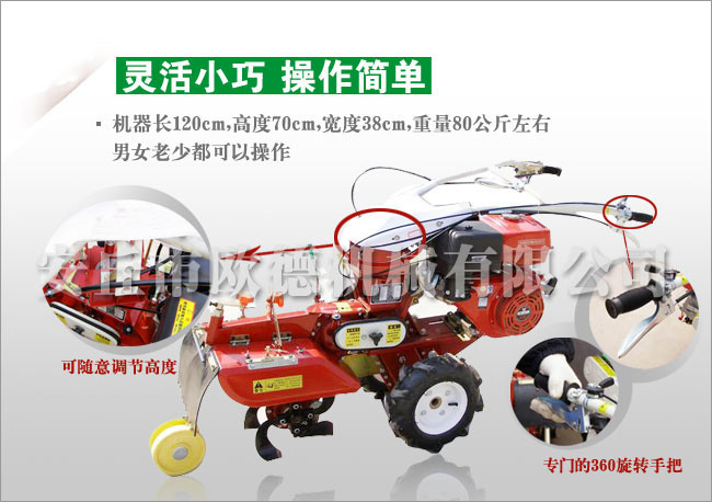 11、適用性強:適用各種山地,丘陵、平原、旱田、水田、大棚、果園、及狹窄地作業,省心。
